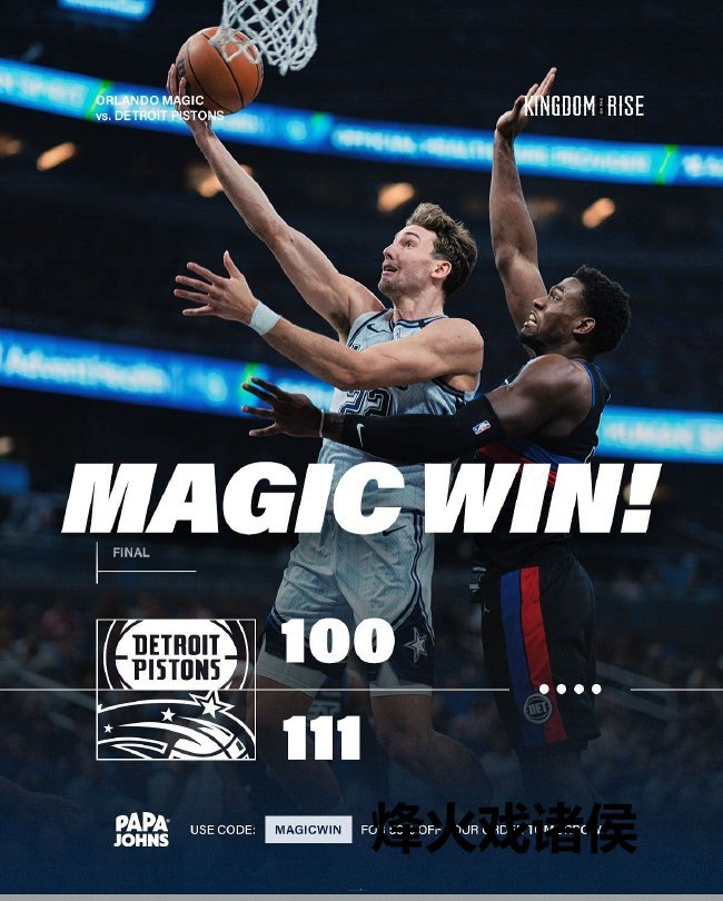 班凯罗继续缺阵,康宁汉姆也因伤缺阵,小瓦格纳22投11中、三分9中4砍下30分9篮板8助攻,魔术赢得两连胜升至东部第三。